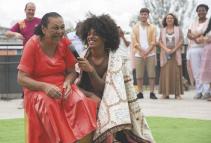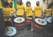 Jovens durante apresentação musical da Escola Olodum, no bairro do Pelourinho, Salvador (BA). Fotografia de 2021.