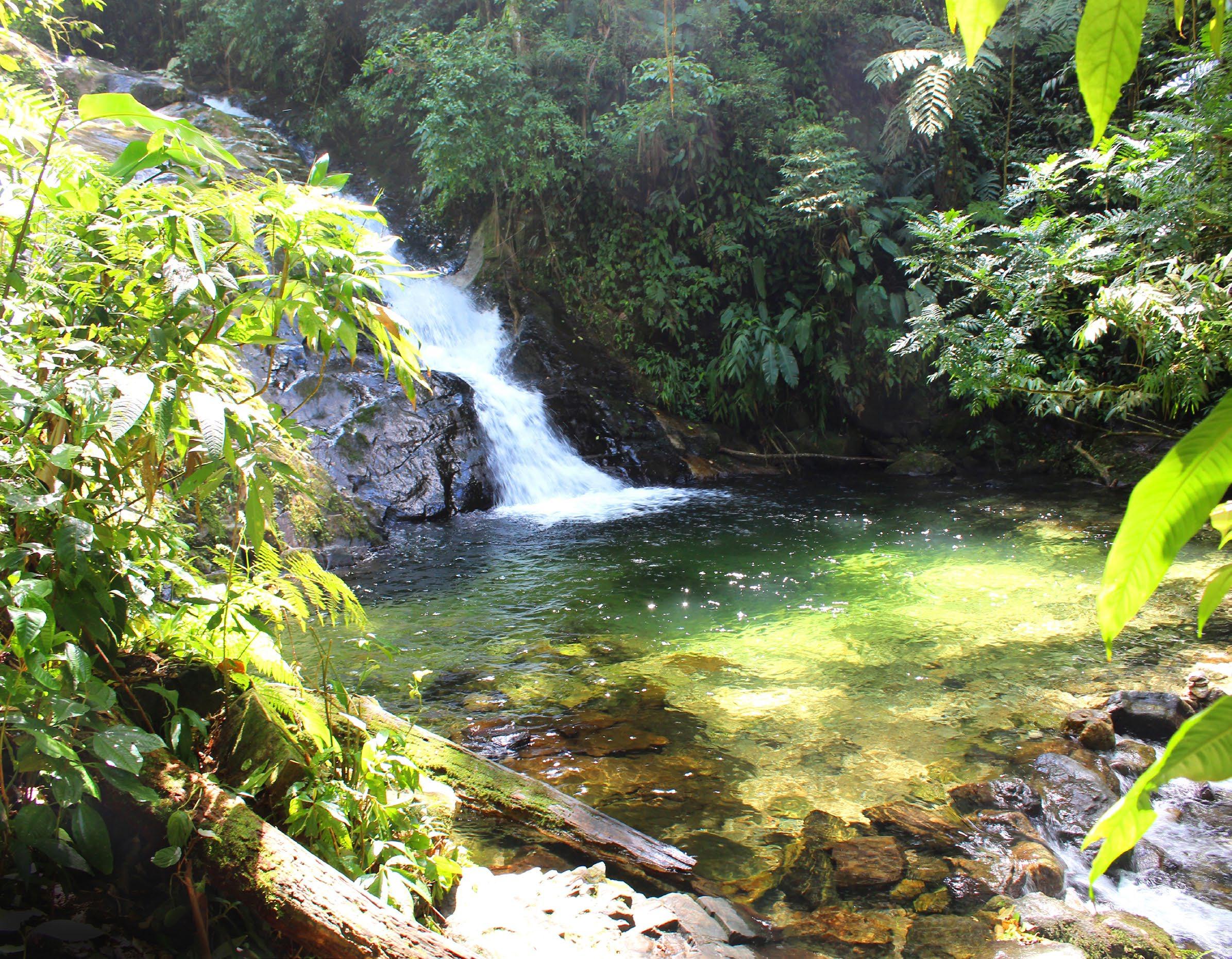 O acesso é através de uma trilha em meio à mata atlântica. a energia mística e a natureza exuberante valem o passeio.
