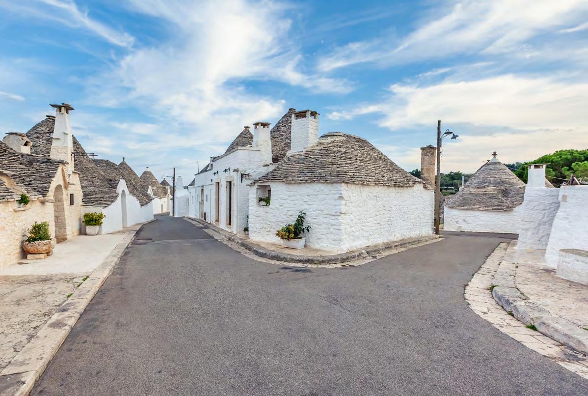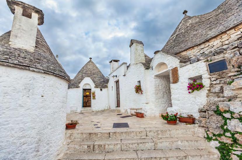 olignano a Mare, ao lado, conhecida por sua paisagem, e Alberobello, acima, que chama a tenção pelos trulli, as típicas construções. Ao lado abaixo, exemplo das conservas tradicionais da Puglia.