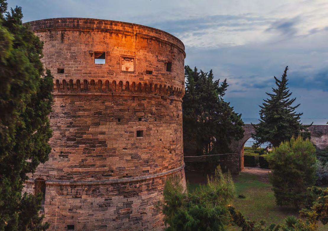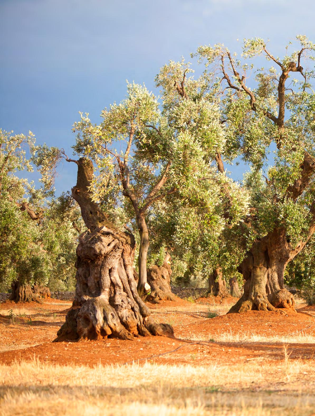 Acima, castelo à beira-mar de Taranto e, ao lado, as oliveiras seculares de Salento.