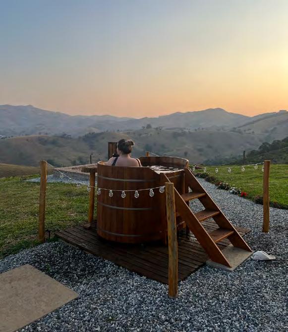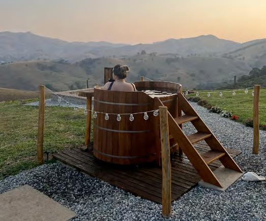 Todas as cabanas contam com ofurôs (ao lado abaixo) externos e paisagens incríveis; O Refúgio do Horizonte tem proposta com dois andares (ao lado); Privacidade, paz e conforto na Serra da Mantiqueira (abaixo)