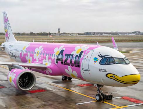 Anova aeronave homenageia a icônica personagem margarida que se junta à minnie, mickey e Pato Donald formando a frota mais mágica do mundo. O novíssimo “margarida Nas Nuvens” passou pelo processo de pintura e customização e deve entrar na malha aérea da empresa até o final deste ano. Delicado, mas cheio de personalidade, o design feito para a mais nova aeronave da frota homenageia características bem conhecidas da personagem que fez sua primeira aparição em 1937. antes de iniciar suas operações nos voos domésticos da azul, o avião passará pelo processo de instalação de Wi-Fi e Tv ao vivo, serviços oferecidos gratuitamente apenas aos clientes que voam com a empresa. as aeronaves dessa frota operam em rotas domésticas por mais de 40 cidades brasileiras e levam a magia dos parques do Walt Disney World para os céus de todo o Brasil. informações: voeazul.com.br