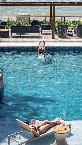 O dia tranquilo sob o sol começa na área externa do hotel, cuja piscina é o ponto central, com espreguiçadeiras dentro da água e uma hidromassagem. logo em frente, um lounge para descanso tem vista direta para a Praia de Peroba, assim como as duas jacuzzis no mesmo deck. em poucos passos você já estará no mar, então aproveite para se jogar na água em um bom mergulho ou praticar caiaque e stand-up paddle com os equipamentos que o Árvo disponibiliza sem custo. Como o mar é bem raso e tranquilo, essas são experiências acessíveis até para quem nãotem muita intimidade com a água.