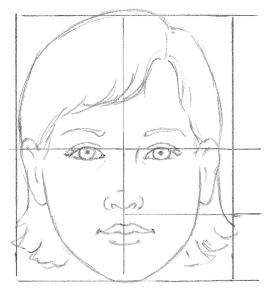 La ubicación de los rasgos faciales va cambiando a medida que, con la edad, el rostro se alarga y se afina. Utilice líneas guía horizontales para dividir en secciones iguales el área que va desde la línea central horizontal hasta la barbilla; estas líneas pueden emplearse para determinar la colocación de los rasgos faciales.