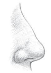 La base de la nariz está a medio camino entre la línea de las cejas y la base de la barbilla.