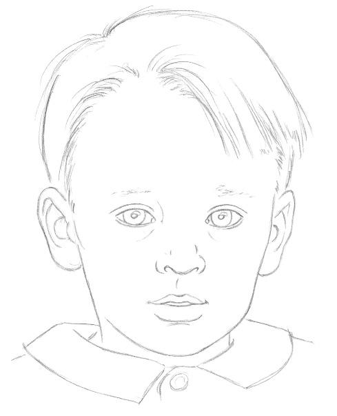 Ubicación de los rasgos Este niño, según sus rasgos, tiene unos cinco o seis años de edad. La cara se ha alargado lo suficiente como para desplazar la línea de las cejas de manera que se alinee con la parte superior de las orejas, lo que indica que ya no es un bebé. Sin embargo, los ojos están más separados, lo que indica juventud. La boca todavía está relativamente cerca de la barbilla, lo que también pone de relieve su corta edad.