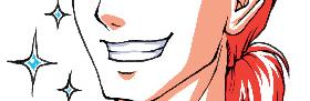 Este hombre exhibe una sonrisa amplia y confiada que revela una dentadura blanca y resplandeciente. Los destellos añaden un efecto cómico, como si el personaje se estuviera recreando en su propio encanto.