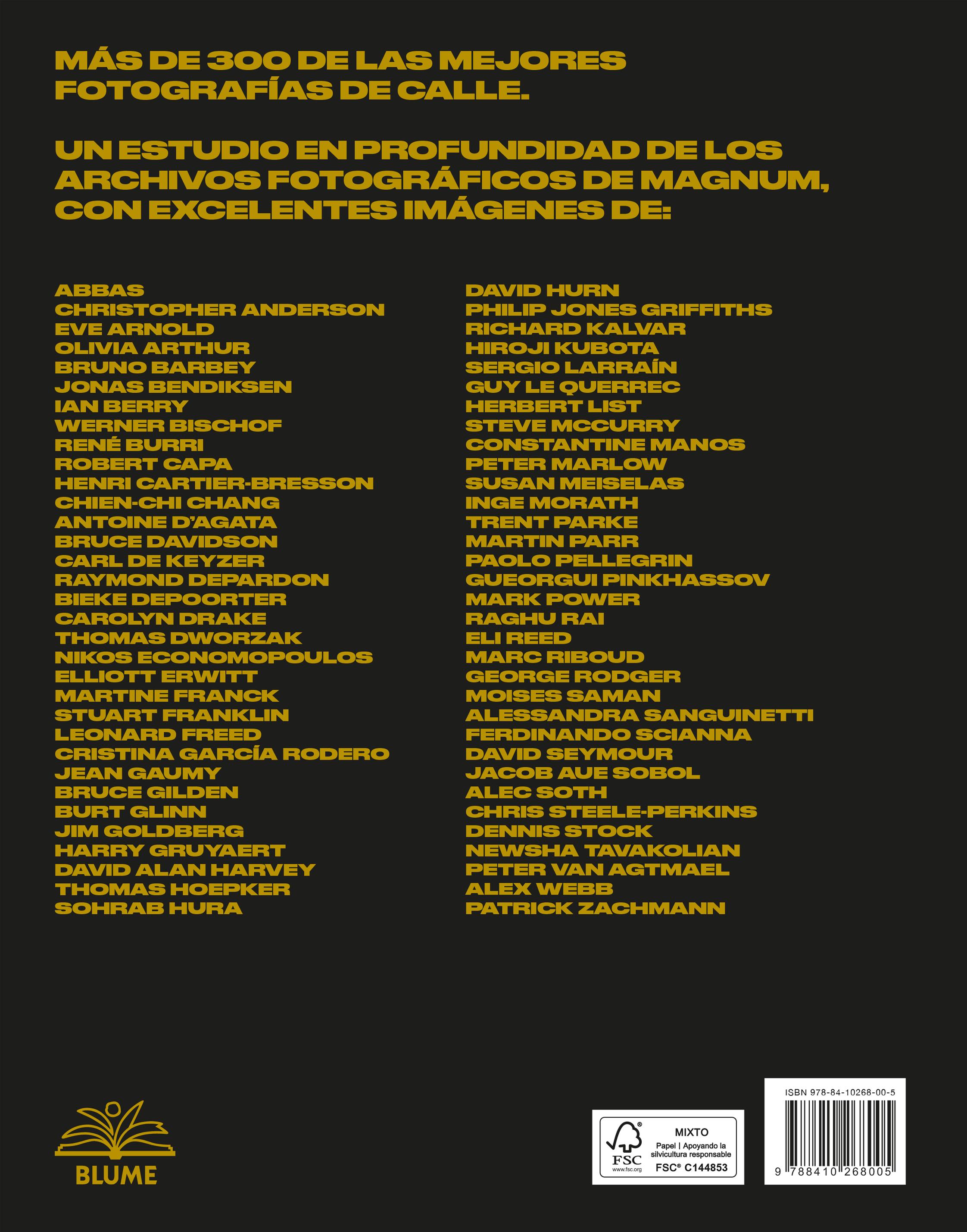 Todos los fotógrafos de Magnum incluidos en este libro podrían definirse, sin duda, como urbanitas expertos. Trabajando en la ciudad todos ellos se sienten, o se sentían, como en casa, mezclándose en el tejido urbano, olisqueando esos momentos efervescentes en que una fotografía puede presentarse repentinamente. Como los taxistas, los fotógrafos de calle saben cómo funcionan las ciudades, cómo se relaciona la gente, dónde está la acción. Ser un experto urbanita es saber por dónde se pone el sol en otoño en Washington Square Park o qué calles del Soho están más concurridas los viernes por la noche.