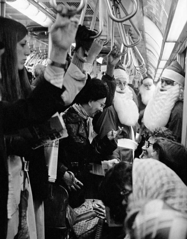 Es duro pensar en hombres que visten como Santa Claus como marginados, pero a finales de 1976, cuando vivía en el barrio de Little Italy, en Manhattan, Meiselas vio que varios grupos de hombres de su barrio, cerca de Bowery, llevaban barba blanca e iban vestidos con ropa de fieltro rojo. Su curiosidad natural la empujó a indagar y descubrió que esos hombres vivían en un refugio para gente sin hogar y que durante las vacaciones recaudaban fondos.