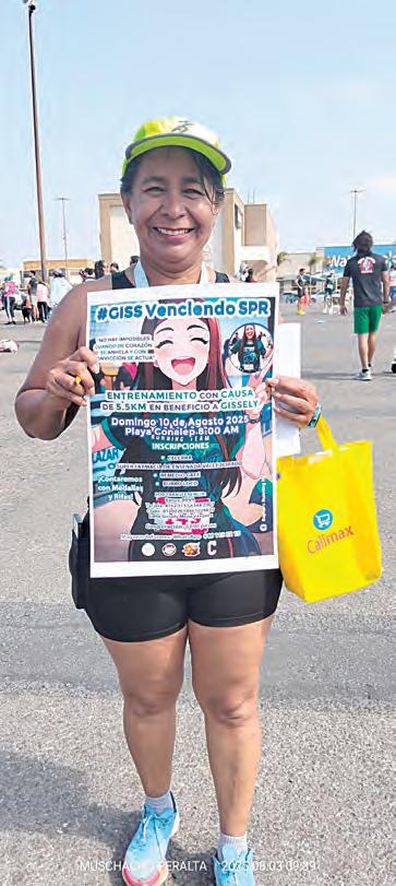 de Persona Rígida (SPR). Edna es corredora destacada porteña, quién además de su talento deportivo, se ganó el cariño del medio por su ánimo y forma de ser. La fecha es este domingo 10 de agosto, con salida en punto de las 8:00 horas en Playa Conalep, donde la distancia será de 5.5 kilómetros, se tendrá hidratación y medalla conmemorativa. La cooperación será en 100 pesos y la inscripción se puede realizar en Celebra de Guadalupe entre calles 6y 7, Súper Farmacia de Ensenada Valle Dorado, Remedio Café y en Burro Loco; también las incripciones estará disponibles el día del evento.