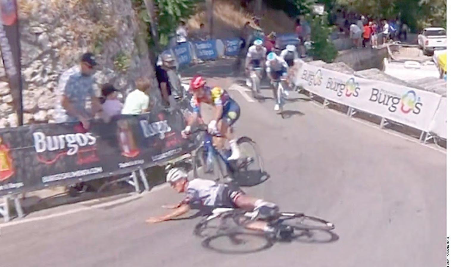 La llanta trasera de la bi cicleta de Isaac del Toro le jugó una mala pasa da en el cierre de la primera etapa de la Vuelta a Burgos. A unos 300 metros y en una curva, la jaca del mexicano de rrapó al tomar una curva bas tante cerrada propiciando su caída justo cuando iniciaba su cierre para ser de los primeros en cruzar la meta.