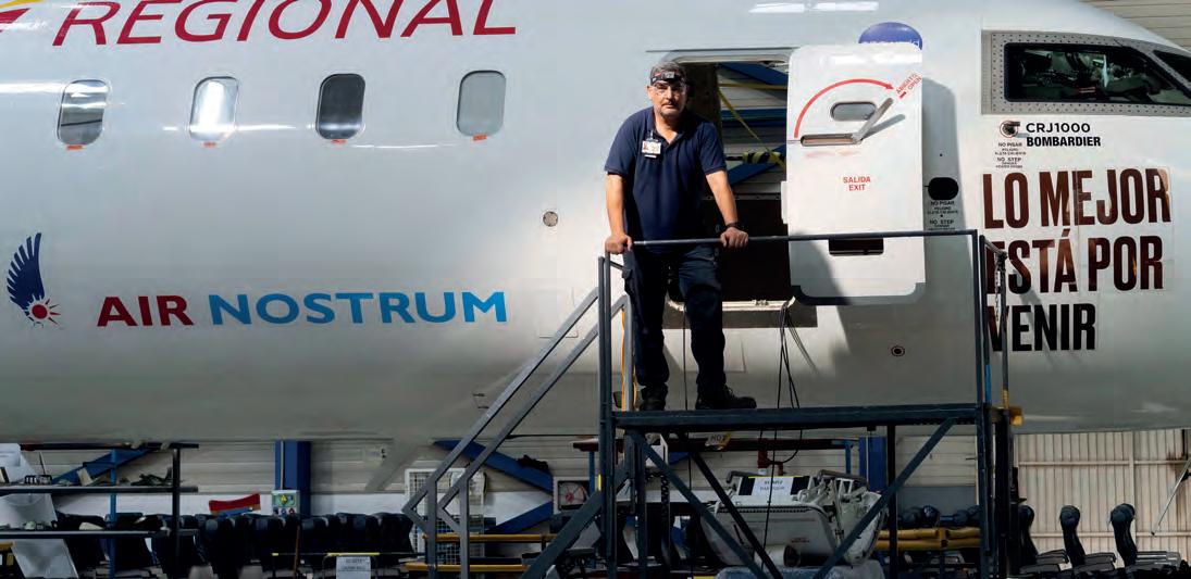 ment wasn’t set up yet. We had three aircraft and there was only one team at first: everything was yet to be organised. For a few years, I was in the warehouse in charge of logistics and management. As I had studied to become an AMT, I was transferred to the production department and was sent to Amsterdam to attend a Fokker 50 aircraft course. I then focused on the CRJ200 after a course in Montreal, and on the Dash 8-300. Years later I was part of the airline’s first third-party maintenance initiative, where I continue to this day.