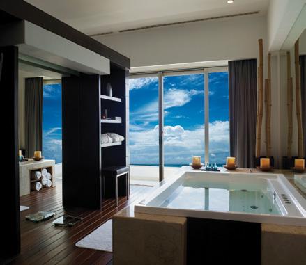 Sus modernas instalaciones ofrecen sutiles aromas y música diseñados para satisfacer los sentidos, con suites espectaculares, magníficas piscinas, gastronomía de autor y una blanca playa de aguas color turquesa —además de menús de aromaterapia en la habitación.