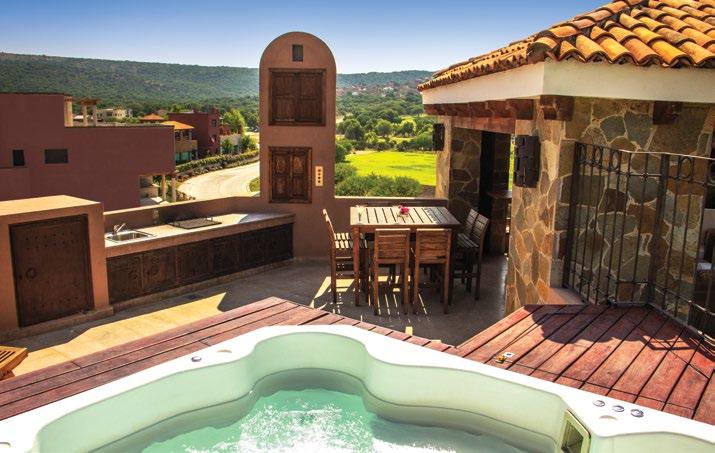 amuebladas lujosamente, las suites cuentan con frescos y elementos decorativos de oro, mármol brillante, baños de tina profunda, además de terraza y comedor exterior, jardín y piscina privados.