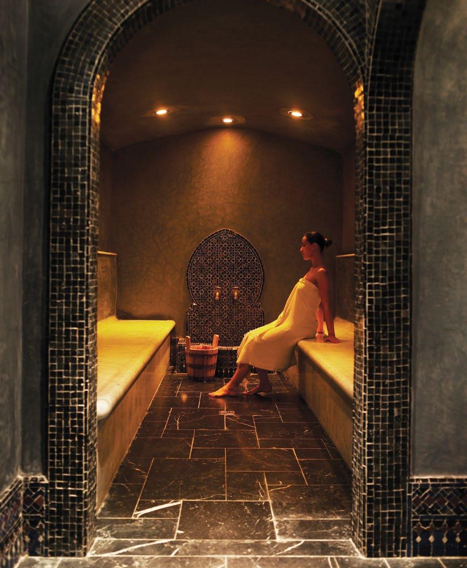 Este santuario de 2,500 metros cuadrados es un sitio de evasión y relajamiento, con azulejos, mármol, arcadas, marquetería, alcobas y ventanales que crean ambientes íntimos para vivir experiencias incomparables. Las instalaciones ofrecen piscina climatizada con ozono, tres baños hammam tradicionales, tinas de hidromasaje, áreas lounge con servicio de restaurante, salas de sauna, vapor y 10 suites para tratamiento –además de salón de belleza, sala kinética life fitness y boutique spa.