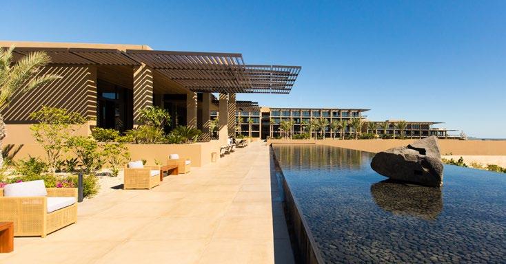 Una mención aparte para el nuevo JW Marriott Los Cabos, concebido por el arquitecto Jim Olson para enmarcar la naturaleza con atmósferas refinadas y decoración artística de primer mundo, alta gastronomía y experiencias de lujo vanguardista en Puerto Los Cabos.