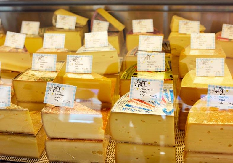 El casco urbano de Appenzell es peatonal, con pintorescas calles, casas pintadas a la manera tradicional con frescos exteriores y numerosas tiendas donde también se encuentra el refinado queso Appenzeller.