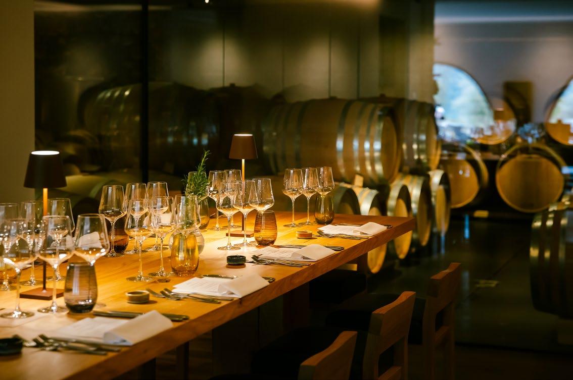 Las experiencias en la Tenuta Castello di Morcote son siempre un momento de descubrimiento y placer, como el delicioso Wine & Dine en la sala que se asoma a la bodega.