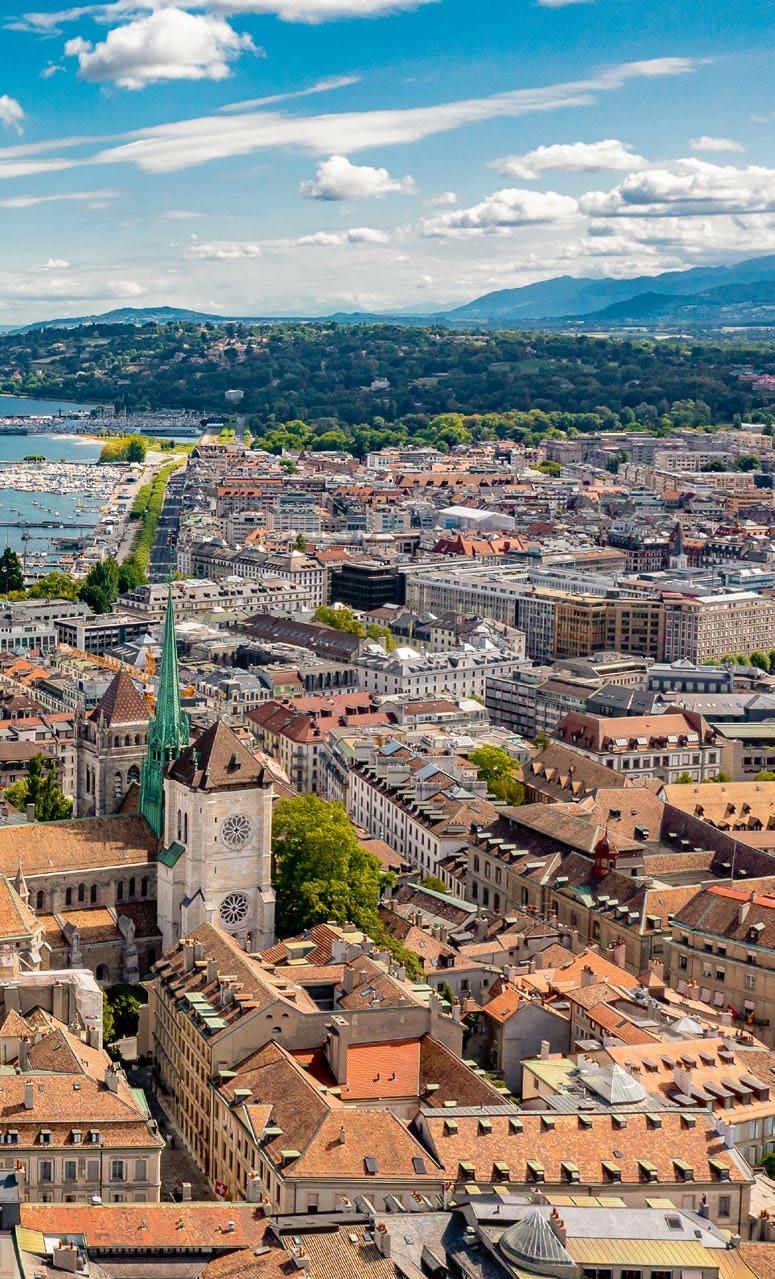 C on uno de los más altos niveles de calidad de vida y desarrollo humano, rodeada de montañas nevadas, embellecida por lagos pintorescos, ríos, llanuras y valles, Suiza presenta una variedad de paisajes que deleitan a los viajeros. Ginebra, situada a la salida del río Ródano del lago Lemán, también conocido como Lago de Ginebra, es una ciudad global, centro financiero y de la diplomacia debido a la presencia de numerosas organizaciones internacionales, entre ellas la sede de muchos de los organismos de las Naciones Unidas.