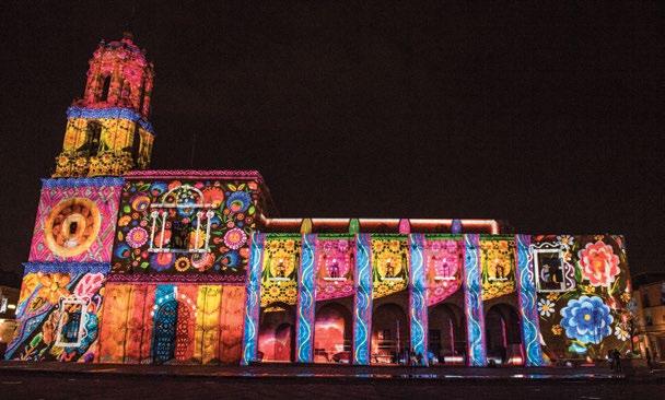 El recurso del video mapping es la forma más impactante de presentar contenidos visuales; un espectáculo de este tipo consiste en una proyección de tamaño monumental en la que se utiliza una gran superficie, como la fachada de un edificio a manera de pantalla. Para cubrir el enorme espacio se despliegan imágenes indivi-