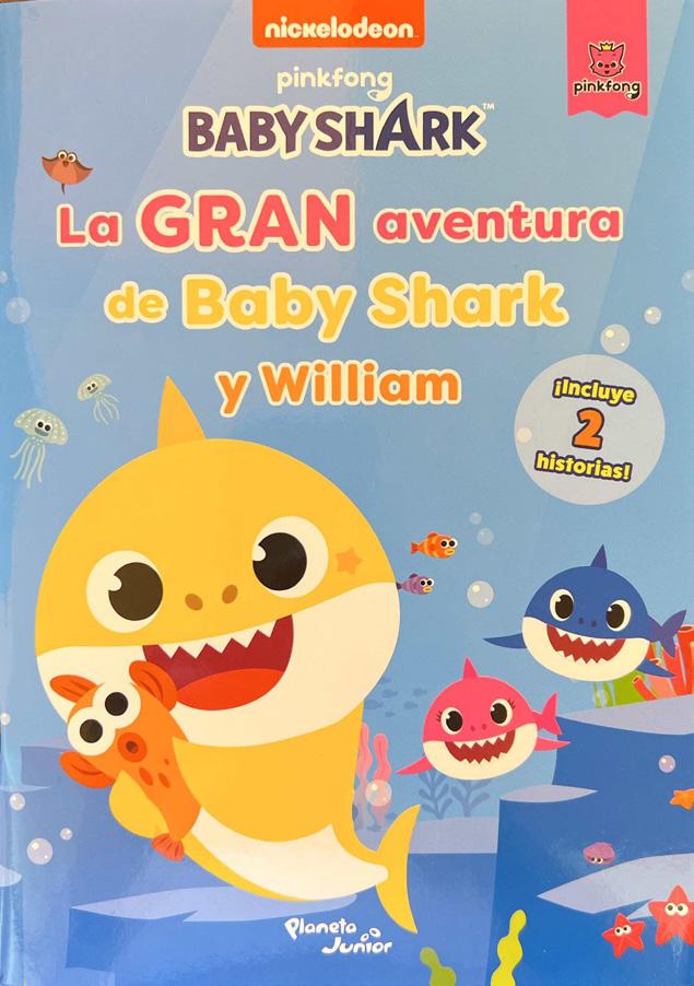 La gran aventura de Baby Shark y William Este libro incluye dos historias del bebé tiburón y sus amigos. Una explora el suelo marino mientras busca tesoros que refuerzan el conocimiento sobre los números y colores, y en el segundo se aprende cómo se puede ayudar a salvar nuestro océano con el ritmo de la famosa canción de Baby Shark. Maytalia y la comida