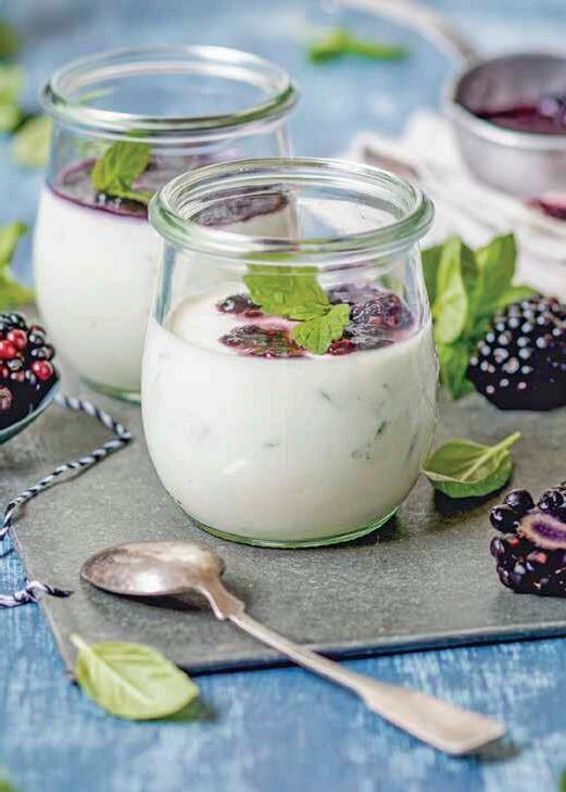 PANNA COTTA CON SALSA DE ZARZAMORA Y ALBAHACA