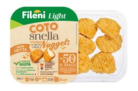 Caratteristiche: realizzati con filetti di pollo 100% italiano, allevato senza l’uso di antibiotici, e avvolti da una croccante panatura a base di cornflakes, contengono il 50% di grassi in meno rispetto al mercato degli snack panati, grazie a un nuovo processo di produzione che vede la cottura al forno e un getto di olio nebulizzato.