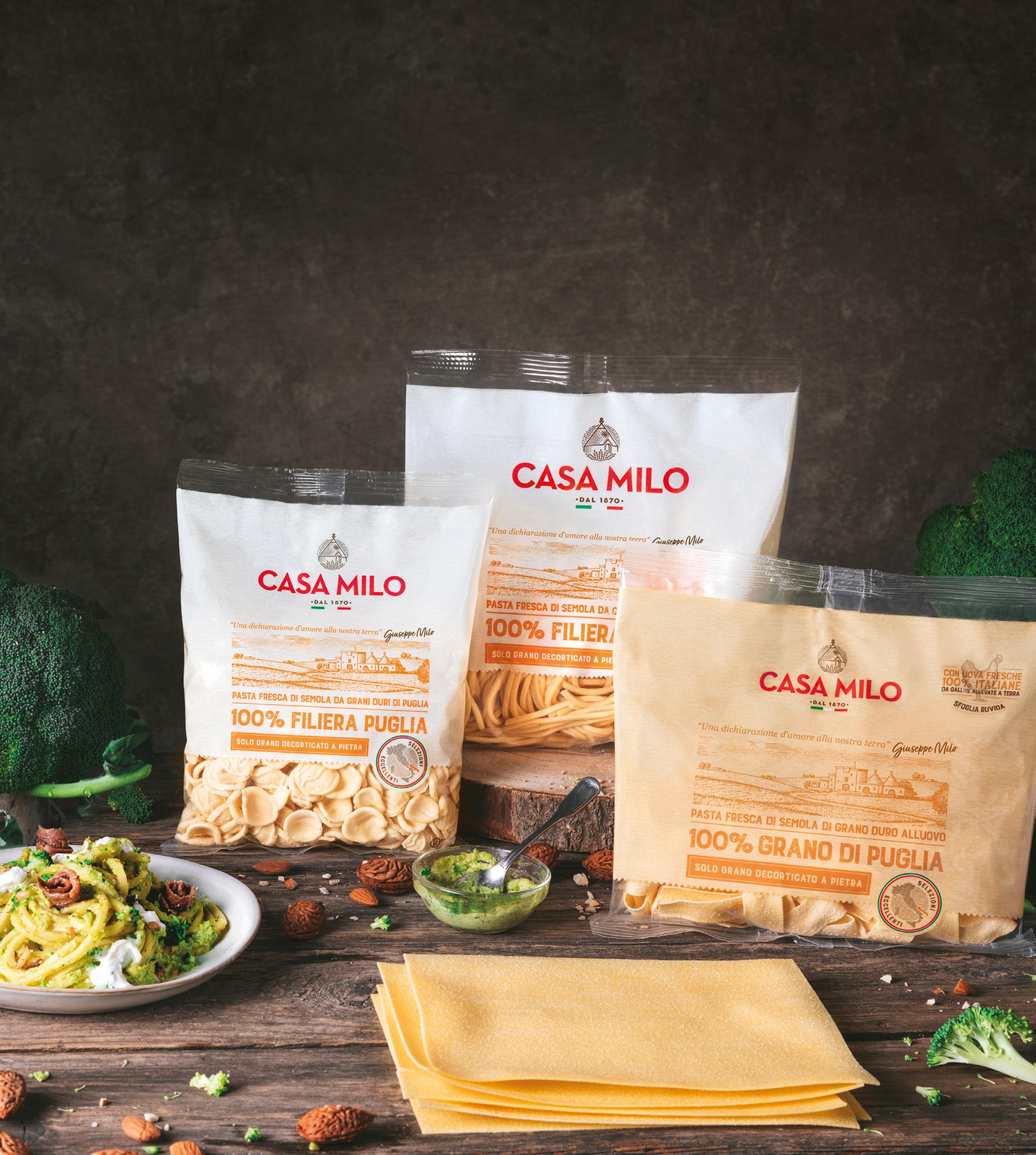 Il Gruppo Milo lavora per diventare un partner commerciale sempre più affidabile. «Chi ci sceglie per produrre prodotti a Mdd lo fa per la qualità e la sicurezza della nostra pasta – spiega Giuseppe Milo – ma anche per la flessibilità e la puntualità dei nostri servizi. Per quanto riguarda invece i prodotti a marchio Casa Milo, abbiamo rinnovato i packaging affinché fossero non solo innovativi e più sostenibili, ma anche particolarmente accattivanti, capaci di tradurre i nostri valori e il nostro legame con il territorio attraverso un look e un linguaggio contemporaneo, in linea con un mercato in continua evoluzione. Questi sforzi ci hanno permesso di mantenere un alto livello di soddisfazione tra i consumatori e di consolidare la nostra presenza sui mercati internazionali».