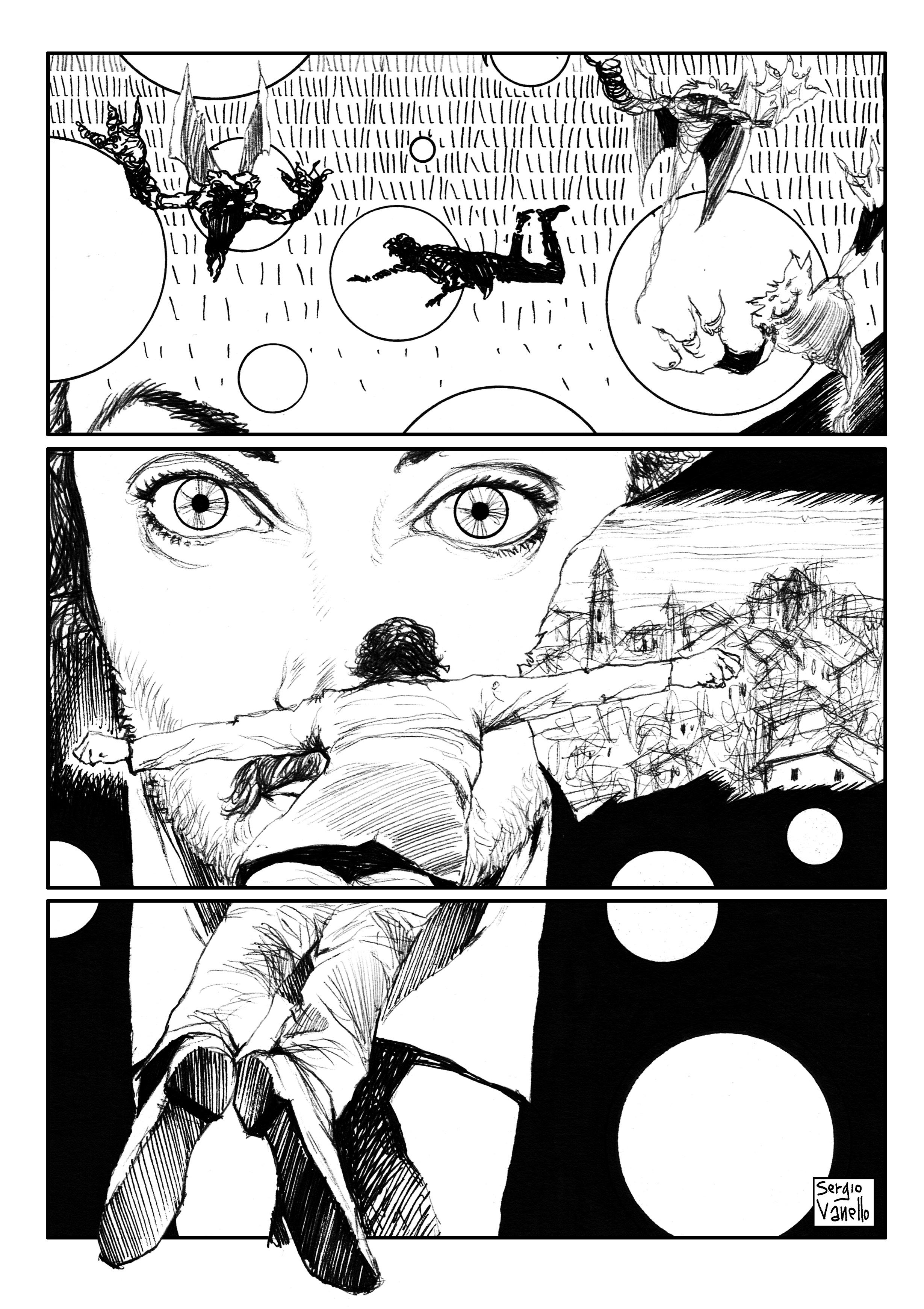 volutamente scarna come una sequenza di frame psichici dove il tema di base, l’idea, governa sullo svolgimento tecnico e riempie tutto. Il bello è che, per come Vanello narra questo beyond, non occorre una massa infinita di tavole, non una didascalia o pacchi di vignette in più. Con questo brevissimo episodio, Vanello espone una possibilità di interpretazione del reale: la vicenda a fumetti è solo un pretesto, una molecola nel Dna dell’universo. Così come Lovecraft stesso, nel suo pessimismo cosmico – nemmeno tanto distante da quello leopardiano – definiva l’essere umano una particella insignificante nella grande, pur impercettibile macchina dell’Infinito.