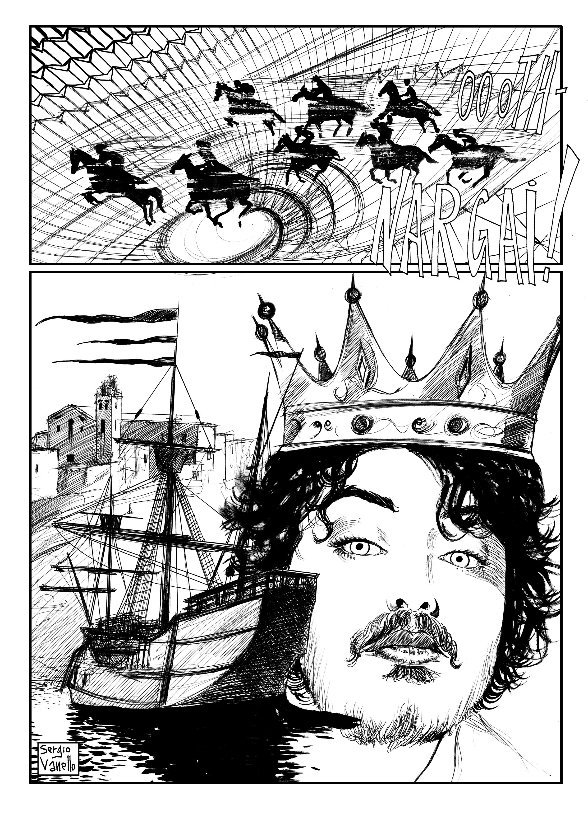 La città senza nome è il viaggio desertico verso quel non luogo e quel non tempo in cui l’uomo può trovare i segni della gigantesca oscurità che attende la sua anima. E anche qui, Vanello usa la sua rapida sintesi narrativa ed è come se il colore venuto dagli inferi servisse a farci sentire quel vento caldo che attrae il protagonista verso l’altrimenti insondabile comprensione di una delle nostre dimensioni (im)possibili. Sarà bizzarra la mia sensazione, ma nelle prime vignette sento qualcosa del Buzzati narratore.