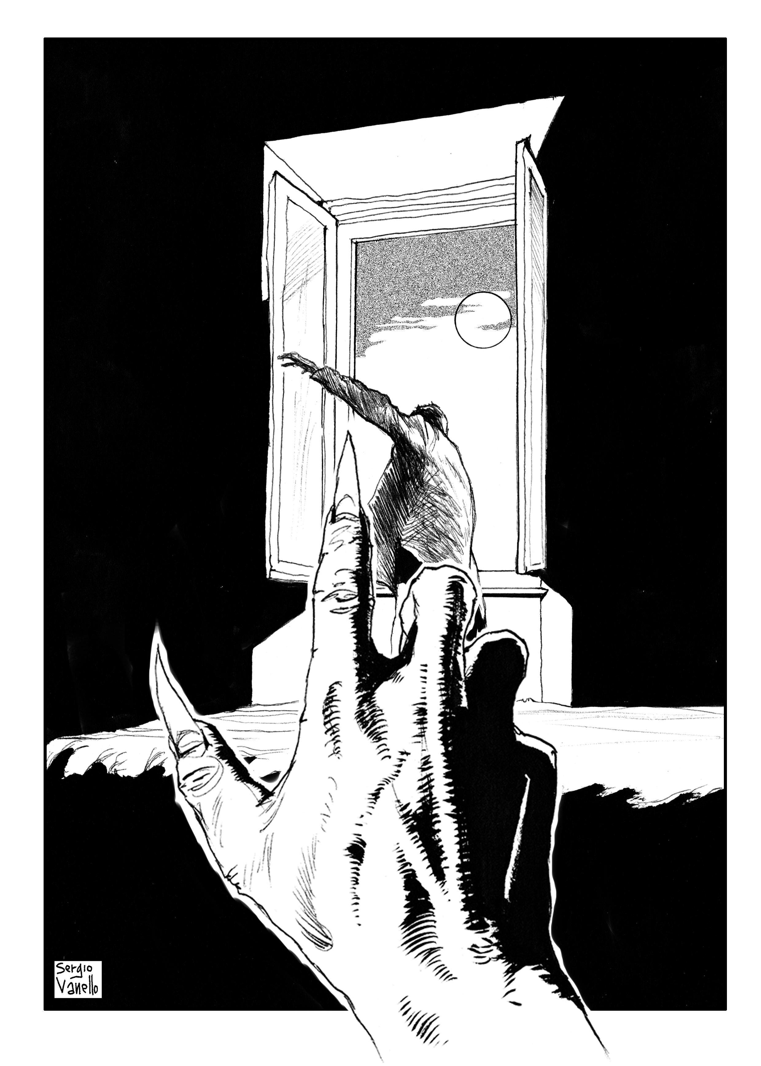 Non c’è da stupirsi dell’apparente brevità delle storie realizzate da Sergio Vanello. È la formula del fumetto che ha fatto la storia (per tornare alle storiche testate accennate all’inizio). Ricordo un episodio della leggendaria serie «Horror Pocket» (Gino Sansoni). Il volume n. 13, Nero di sera apocalisse si spera, contiene il racconto La cripta di ben due tavole, spudoratamente tratto da Nella cripta, sesto titolo di questo libro, e neanche attribuito a Lovecraft (motivo per cui ne ometto l’autore); il suo pregio è appunto nella brevità, nella sintesi, dote che non manca a Vanello per descrivere un incubo di morte (forse) vivente ma camuffata di nero. Giusto per ribadire che all’horror non servono montagne di pagine.