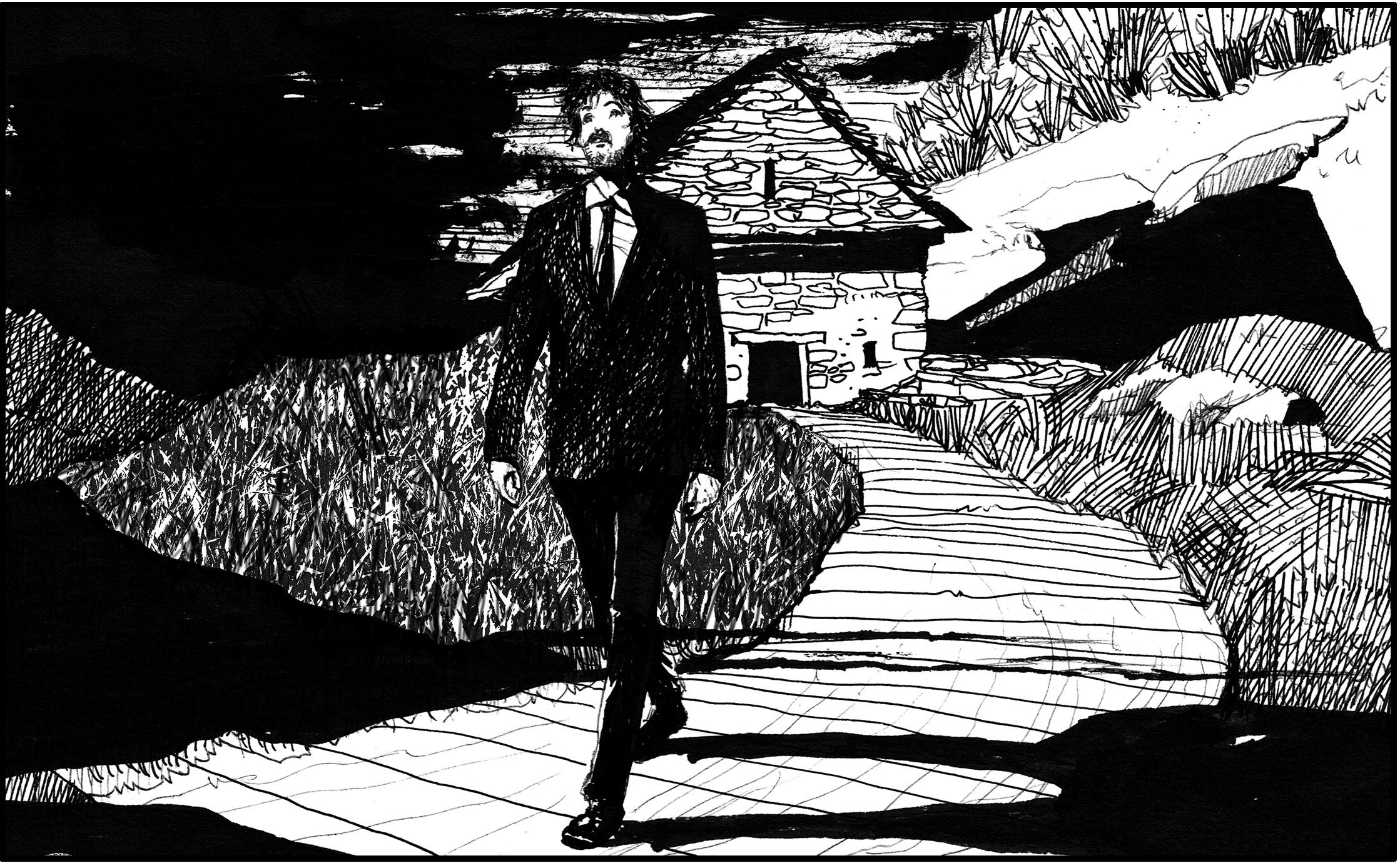 Poi, un giorno d’estate, fu cacciato dalla sua soffitta e vagò senza meta per le strade, scivolando su un ponte fino a un luogo dove le case diventavano sempre più sottili.