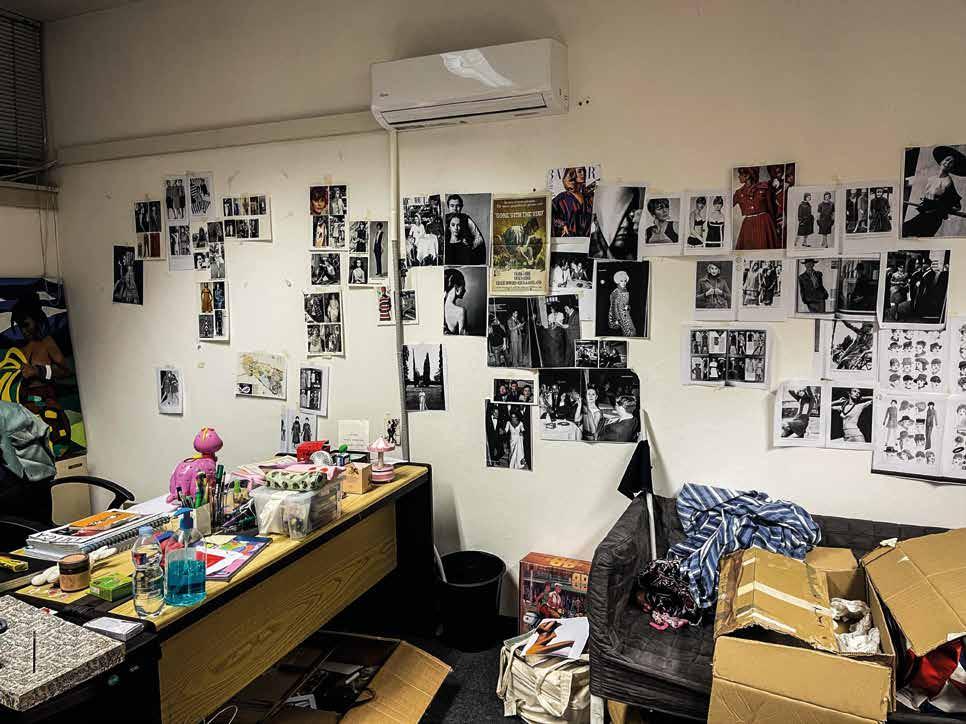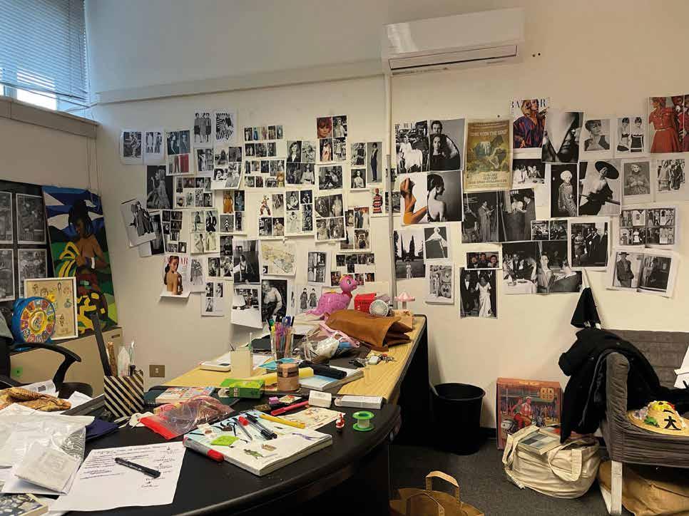 In queste pagine si possono apprezzare le migliaia di immagini stampate e appese ai muri che fanno da "moodboard" per ispirare lo stile dei costumi e delle acconciature dell'epoca.