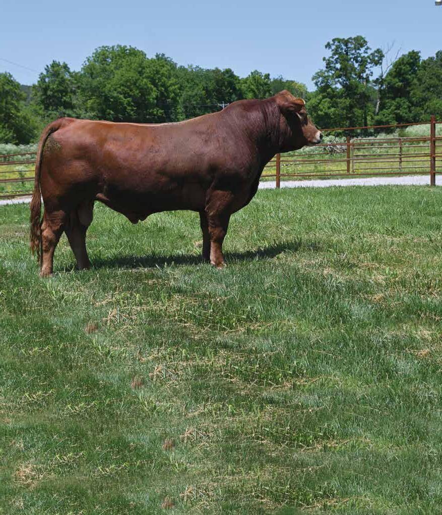 Calving-ease deluxe, he ranks in the top 10% for BW and top 5% for CE. This dude is a total outcross to most popular red genetics that have crossed the border from Canada. His first calves came easy, have plenty of vigor and show a lot of promise. This could be the herd bull that provides low birth coupled with true performance.