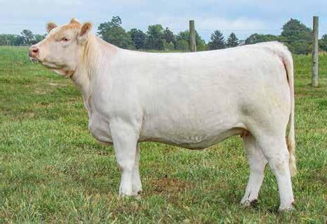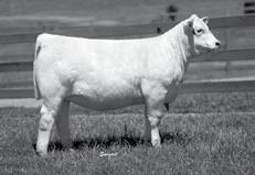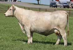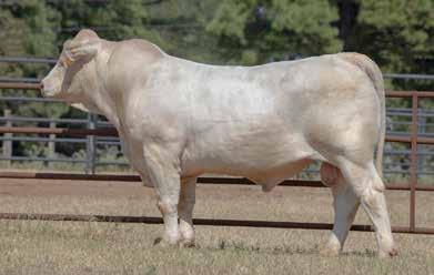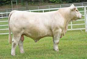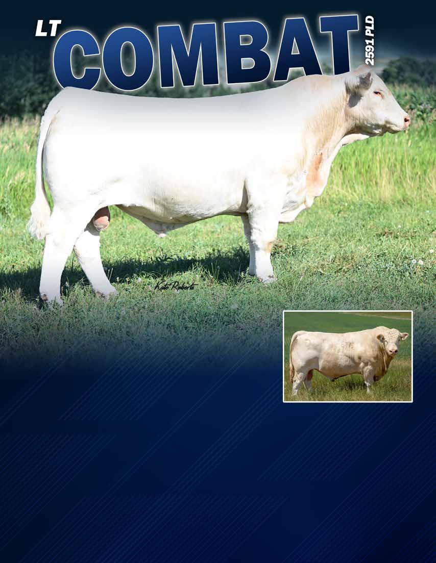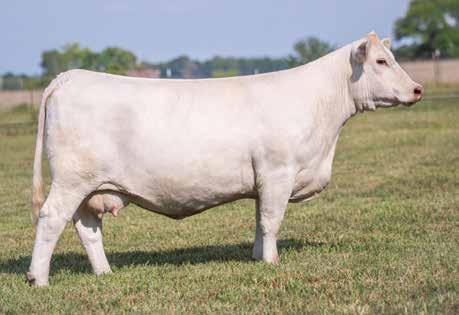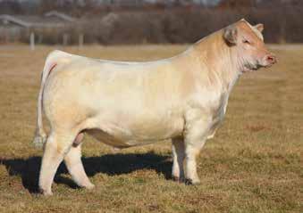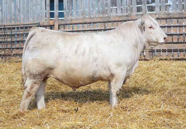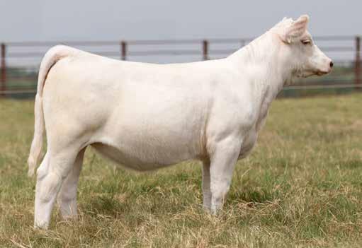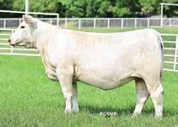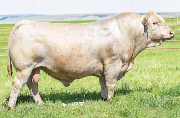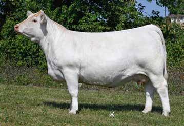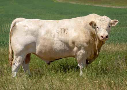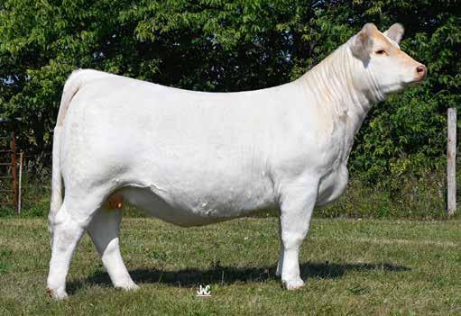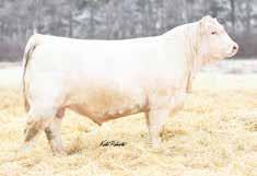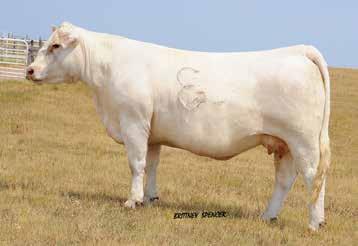 Combat was sold to Kenmere Charolais in our 2023 Bull Sale for $75,000 for twothirds interest. He brings a well-balanced profile to the table with his eye appeal, big scrotal, perfect foot structure, added length and depth of body and cow making power in one package. Combats Dam was our pick from Hubert Charolais that has a beautiful tidy udder and model confirmation. This herd sire prospect sired by the famous and heavily used DC/CRJ Tank E108P will definitely rise to the top of our program!