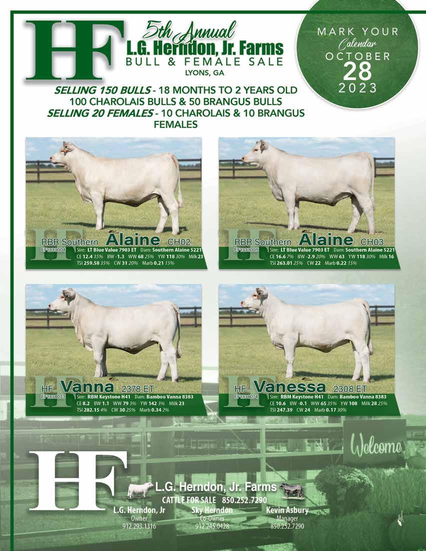October 28 – L.G. Herndon Jr. Farms Best of the South 5th Annual Black & White Bull & Female Sale, at the farm, Lyons, Ga. Contact: L.G. Herndon Jr., Sky Herndon, or Kevin Asbury.