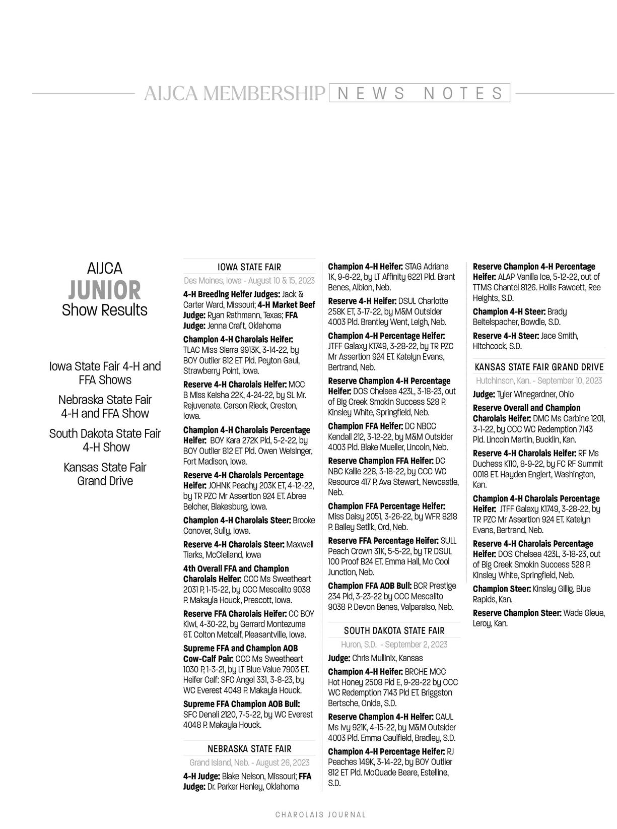 Notice to advertisers: Advertising for sales scheduled prior to the 20th of the month of publication accepted at the advertiser’s risk. The Charolais Journal assumes no responsibility for distribution.