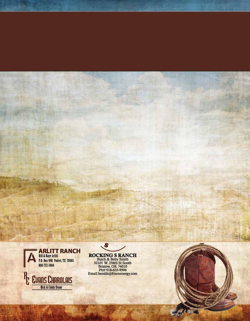 C H A R O L A I S J O U R N A L INDEX AD 21 Ranch ......................................................... 58 45th National Charolais Sale 44, 45 4C Amos Charolais 59 8 Story Farms 39 5J Charolais 39 ACES Wild Ranch 12 Agricola Knoll Farm 59 Allison Charolais 51 Arlitt Ranch 5 ARROWQUIP .................................................. 31 B & B Farms ................................................... 50 Bar J Charolais .......................................... 7, 58 Bar S Ranch ................................................... 56 Beavers Charolais ......................................... 56 Bella Angel Farms ............................................ 5 Big Creek Charolais ....................................... 39 Bina Charolais ................................................ 57 Bill King Ranch ............................................... 57 Boscamp’s Arrowhead Ranch 58 Bovine Elite, LLC. 60 Bracewell Cattle Co. 58 Bradley Cattle 22, 23, 39 Broken Box Ranch 55 Bullard Cattle 56 Cardinal Charolais 55 Castleberry’s Hilltop C Charolais 58 Charolais Association of Texas 58 Charolais Banner ..........................................60 Clayford Ranch Charolais ............................. 58 Clifton, Greg ...................................................60 Condra Charolais Farms ............................... 50 Corman Charolais ......................................... 39 Crawley, Gary G .............................................60 Crews Farms .................................................. 59 Crutcher, Matt ...............................................60 Curfman Farm................................................ 56 Danley Farm 58 DeBruycker Charolais 51 Dennis Charolais Farm 59 DESCO Charolais Farm 16, 58 Domek Charolais 57 Double-H Charolais 26, 27 Double R Dees 59 Dybdal Charolais 33, 57 Eaton Charolais ................................. Inside Front ECP Cattle........................................................... 58 Effertz Key Ranch .................................. 25, 58 Eggleston Charolais........................................ 41 Endsley’s Charolais Farm .............................. 57 Evans Charolais ............................................... 5 Fancy Creek Charolais 56 Fink Beef Genetics 13, 56 Fox Hollow Farms 14, 15, 58 Franz Ranch 57 Fred Ranch 42, 43, 57 Full Circle Cattle Co. ........................................ 3 Gallagher 60 Garrett Charolais 50 Georgia-Florida Charolais Assn. 35 Geyer Cattle Co 41 Grau Charolais Ranch 57 Gulf Coast Cattle 55 Hale Farms 39 Hang’n A Cattle Co. 59 Hankins Farms 22, 23 Harrod Farms .................................................. 51 Hayden Farm ................................................... 51 Hebbert Charolais ......................................... 57 Henson Family Livestock .............................. 58 Hinshaw Show Cattle .................................... 24 Horse Creek Charolais .................................. 55 Hubert Charolais Ranch .............................. 56 J & J Trust Charolais Cattle ........................... 2 J & M Ranch .................................................... 41 James F. Bessler Inc. 61 JMAR Genetics 6, 16 Jorgensen Charolais 55 Justin B. Stout Auction Service 60 JWC Marketing 61 K & K Charolais Ranch 59 Keahey Charolais 55 Kentucky Charolais Association 51 Keppen Charolais ........................................... 41 Koepsell Charolais Farm ................................ 41 L.G. Herndon Jr. Farms Inc. ....................... 8, 55 LaFraise Farms .............................................. 56 Lambert, Doak ...............................................60 Laue Charolais Ranch ................................... 56 Legacy Custom Meat Processing .................. 7 Lehman Charolais........................................... 59 Lehmann Cattle Co........................................ 39 Linde’s Livestock Photography 60 Lindskov’s LT Ranch Back Cover Little W Farm 50 Long Hall Cattle 51 Los Pinos Cattle Co. 59 MBS Charolais 39 McNickle Charolais Ranch ........................... 56 Mead Farms ................................................... 39 Missouri Charolais Breeders ................................ 39 Mitchell Management ................................... 61 ML Lewis Charolais ....................................... 56 Montgomery Charolais .................................. 51 Morton, Bob .................................................... 61 Myers Charolais ............................................. 56 NextGen Cattle Co. ........................................ 21 Nipp Charolais 58 Nord Farms 56 Oak Hill Farm 34, 55 Odden Charolais Ranch 41 Outfront Cattle Service ................................. 61 Peterson Farms Charolais 39 Prairie Valley Farms, lnc 41 Priefert 60 Rambur Charolais, Ltd. 57 Ramro LLC 59 Reaves Charolais 50 Reich Charolais Ranch 41 Ridder Farms 39 Rifle Creek Cattle Co. 57 Rio Ranch ....................................................... 59 Riverdale Land & Livestock ......................... 39 Rocking S Ranch ............................................. 5 Rogers Bar HR ................................................. 9 SW&S Cattle Co. ........................................... 59 Sandmeier Charolais ...................................... 41 Sandusky Farms ............................................. 51 Sayre Cattle Service ...................................... 61 Schrader Ranch ............................................. 56 Schurrtop Angus & Charolais 57 S.E.A.N.A. Charolais 51 Shadow Springs Farm 56 Skeans Cattle Co. 59 South Carolina Charolais Assn. 35 South Dakota Charolais Breeders 41 Southern Connection Sale ..................... 34, 35 Spring Valley Ranches .................................. 59 Stewart’s Charolais ........................................ 41 Sturgess Double S Cattle.............................. 58 Sullivan Charolais .......................................... 51 Sul