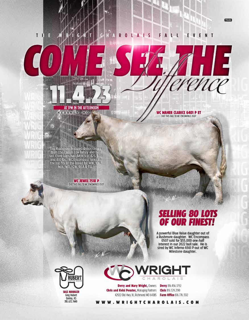 November 4 – The Fall Bull Sale, Noon, Mid-State Stockyard, Letohatchee, Ala. Contact: Bobby Keahey. November 4 – The Wright Charolais Fall Event Sale, 1 p.m., Wright Charolais Sale Facility, Kearney, Mo. Auctioneer: Greg Goggins. Sale Manager: Hubert Cattle Sales.