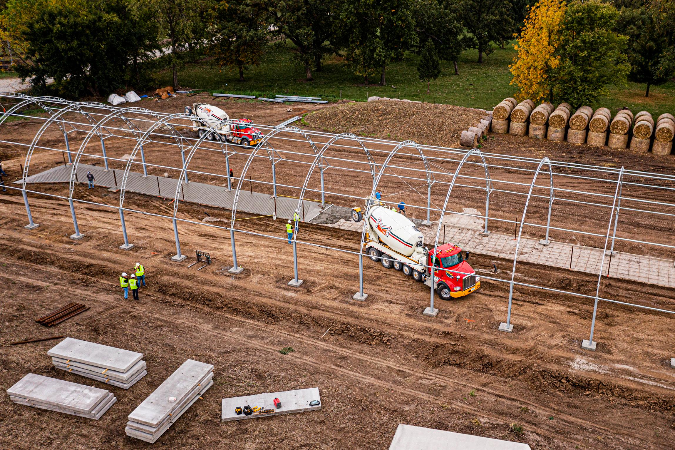 240,500 yardas cúbicas de hormigón colocadas. Esto equivale a recubrir un camino de condado con 6” a lo largo de 103 millas o desde Des Moines hasta la ciudad de Iowa. ¡Todo un viaje!