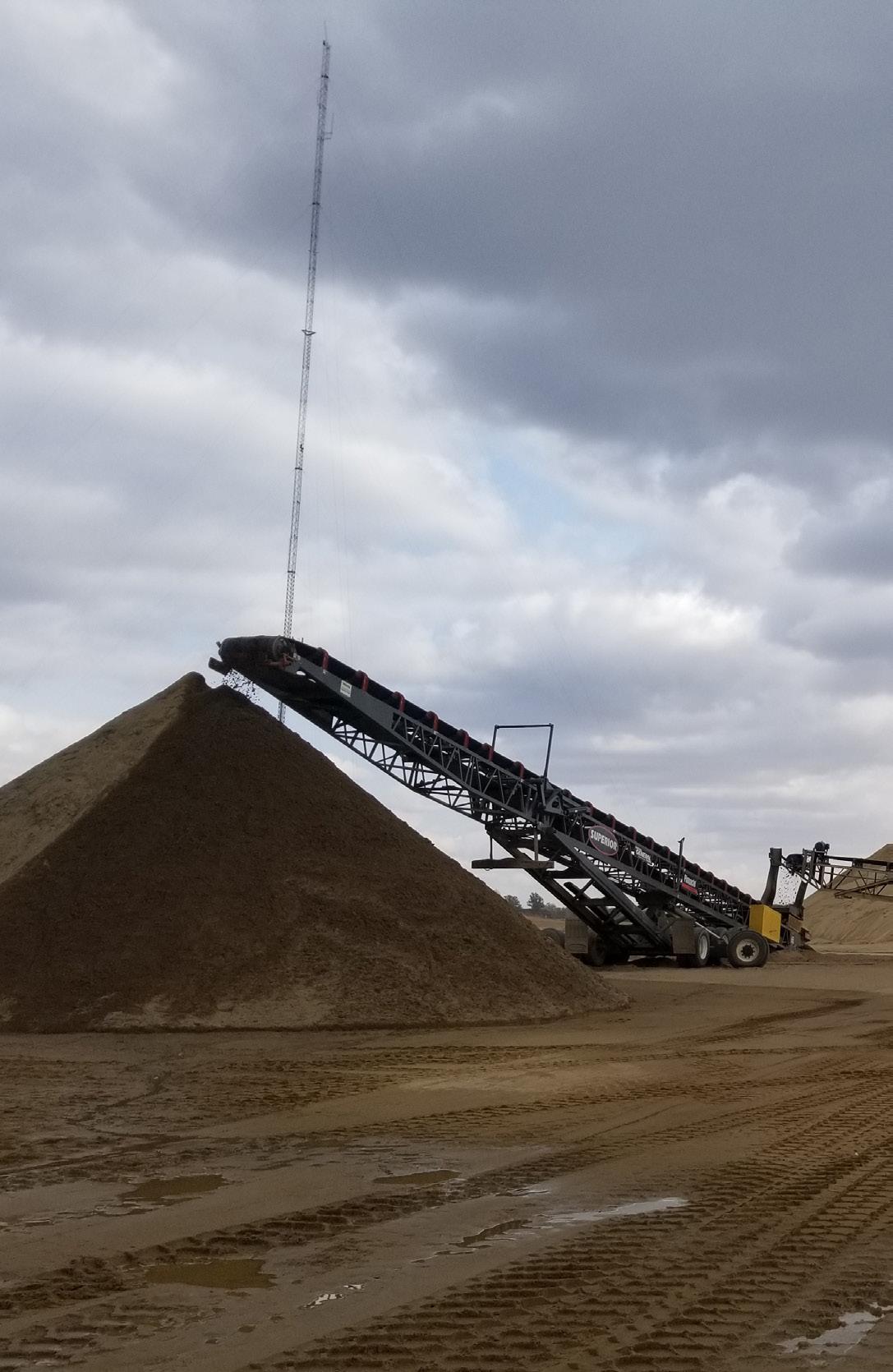 At the Blairsferry Specialty Products facility, the team is processing a gravel product and making high-angle sand. The team is using conveyors, a crusher, and a screen to produce the product.