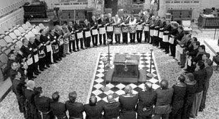 Todos los lunes, cuando estoy dentro del templo, y realizo mis trabajos para devastar la piedra en bruto que me ha sido confiada, recorro de Norte a Sur y de Oriente a Mediodía los mosaicos del taller que representan la fusión de todas las razas, proclamando la unidad humana.