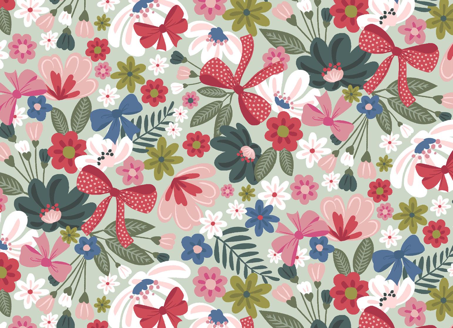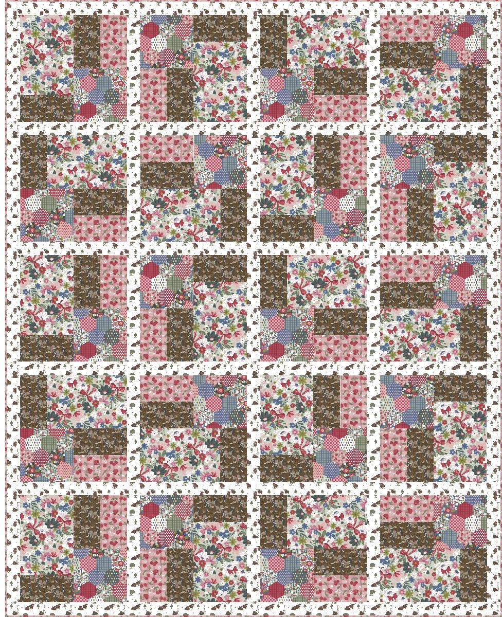 Printed in Pakistan • Free projects with instructions available on www.3wishesfabric.com by December 6, 2024. 21 Free Project Fabric Requirements (SKU) Yardage 12 Kits Additional Supplies Needed Finished Quilt Size: 74 in x 92 in (187.96 cm x 233.68 cm) 22985 WHT CTN D (Highland Farm) 2 yards 2 Bolts 22983 MNT CTN D (Bows and Flowers) 1 ⅞ yards 2 Bolts 22984 TEA CTN D (Packed Hazel) 1 ½ yards 2 Bolts 22986 PNK CTN D (Cherries Jubilee)* 1 ½ yards 2 Bolts 22987 MLT CTN D (Quilt Market) 1 ¼ yards 1 Bolt 22985 WHT CTN D (Highland Farm) 5 ¾ yards 5 Bolt 82 in x 100 in (208.28 cm x 254 cm) Cotton batting