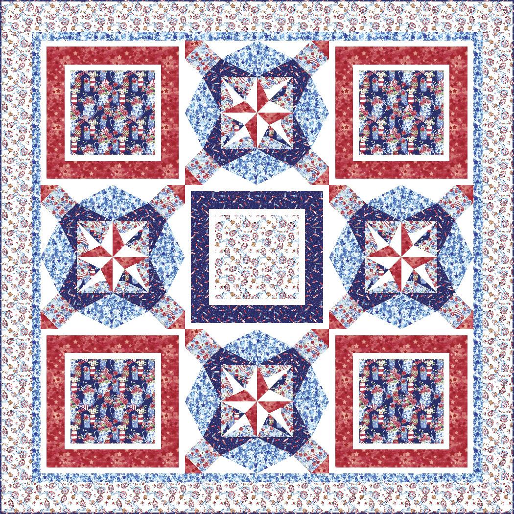 Printed in Pakistan • Free projects with instructions available on www.3wishesfabric.com by December 6, 2024. 45 Free Project Fabric Requirements (SKU) Yardage 12 Kits Additional Supplies Needed Finished Quilt Size: 85 in x 85 in (215.9 cm x 215.9 cm) Solid White Cotton 2 ⅛ yards 2 Bolts 22944 WHT CTN D (Patriotic Pedals) 2 yards 2 Bolts 22946 RED CTN D (Star Texture Red) 1 ⅜ yards 2 Bolts 22945 NVY CTN D (Big Bang)* 1 ½ yards 2 Bolts 22943 BLU CTN D (Star Splatter Blue) 1 ¼ yards 1 Bolt 22942 NVY CTN D (Mason Jar Floral) 1 ⅛ yards 1 Bolt 22947 BLU CTN D (Victory Garden) 1 yard 1 Bolt 22947 BLU CTN D (Victory Garden) for Backing 6 1⁄8 yards 5 bolts 93 in x 93 in (236.22 cm x 236.22 cm) Cotton batting Piecing and sewing thread Quilting and sewing supplies Even-feed foot for quilting (optional)