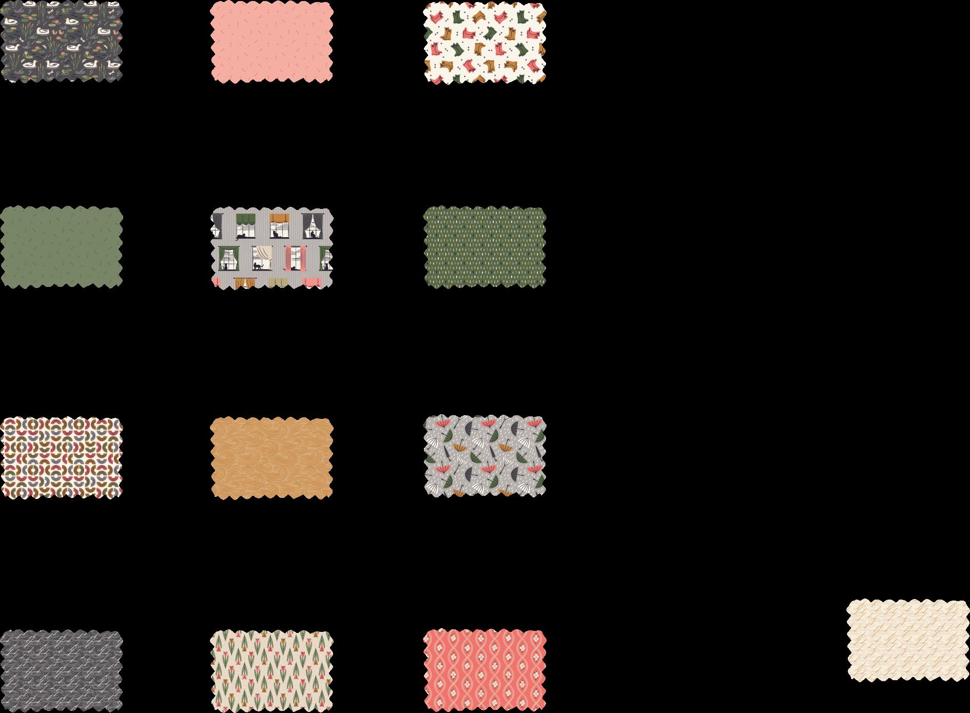BLOCK 1 made with FABRICS A, C, E, G, I AND K