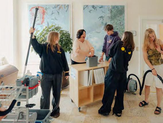 Mød rengøringsassistenten, der kan fejre to årtier med kram og rengøring på Ollerup Efterskole.