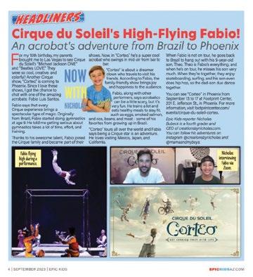 Throughout the school year, Epic Kids Reporters cover issues and topics that ma er most to them and their peers, including breaking news, current events, sports, entertainment, school clubs, and kid pro les. Their stories will appear in both print and digital edi ons of Epic Kids.