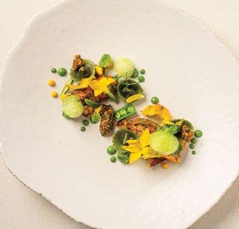 in Arizona. Kai offers Native American cuisine with global accents, immersing guests in the local tribes’ culture. The menu, hand-painted by a local artist, consists of four courses: Birth (hors d’oeuvres), Beginning (appetizers), Journey (entree), and Afterlife (desserts). Chef Drew Anderson partners with local cultivators like Ramona Farms to showcase locally grown produce and Arizonamade olive oil in recipes that merge contemporary tastes with time-honored Native American techniques.