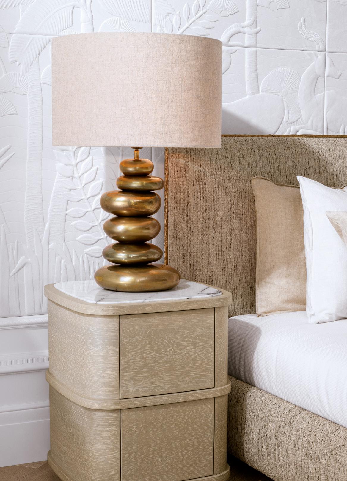 At first glance, Kallisto looks playful — a stack of smooth brass forms balanced like river stones. But look again, and it reveals itself as quietly meditative. Inspired by cairns and Zen gardens, the base evokes a sense of rhythm and flow: repetition without any symmetry, movement without excess. Whether styled in a serene bedroom or minimalist living space, Kallisto brings a calming presence and sculptural edge.