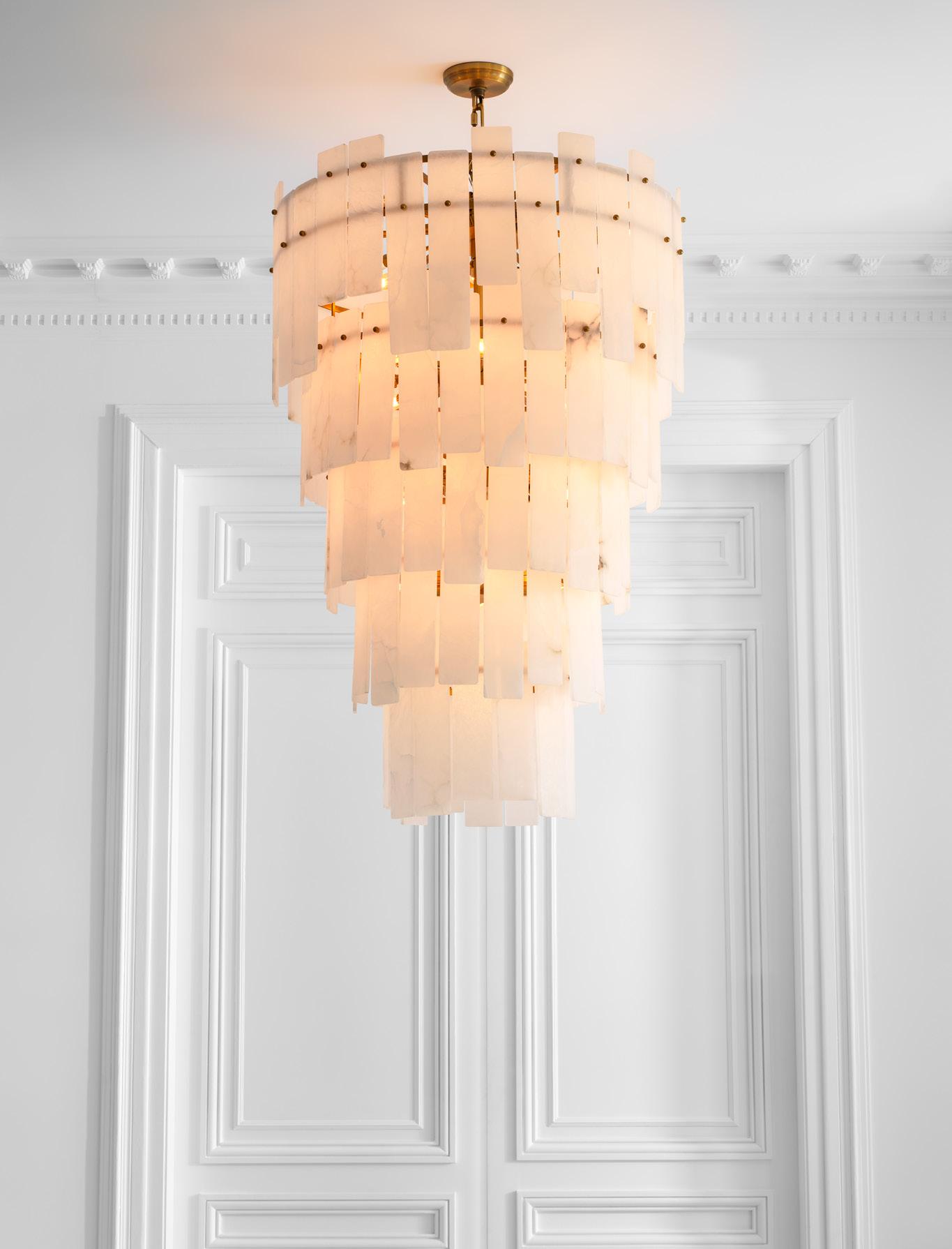 EACH CHANDELIER BRINGS ITS OWN JE NE SAIS QUOI, OFFERING A UNIQUE GLOW THAT DEFINES THE MOOD OF THE ROOM. ALABASTER SHADES GENTLY DIFFUSE THE LIGHT, CASTING A WARM, INVITING AMBIANCE — PERFECT FOR INTIMATE DINNERS OR ELEGANT LIVING SPACES.